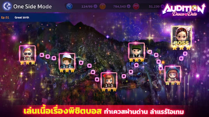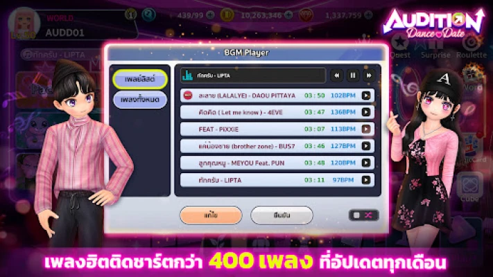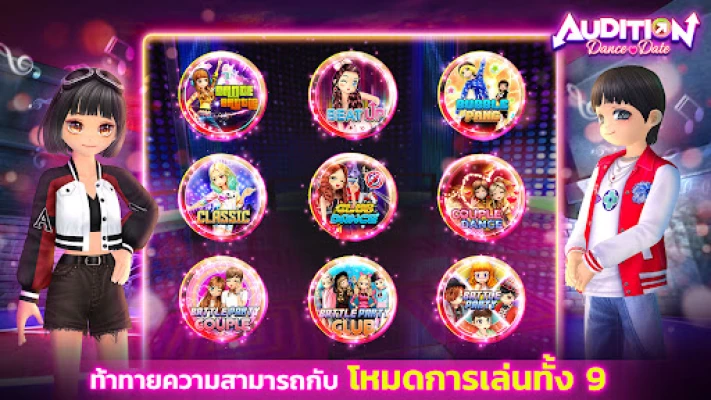 พบกับมิติใหม่ของการเต้นที่หลากหลายเกินจินตนาการ ด้วยโหมดการเล่นที่จัดเต็มกว่า 9 รูปแบบ ตั้งแต่ความคลาสสิกอันเป็นตำนาน โหมด Beat Up ที่ท้าทายความเร็ว ไปจนถึงบรรยากาศปาร์ตี้สุดเหวี่ยงใน Club Dance หรือจะไปประชันสเต็ปคู่รักใน Couple Dance และสร้างตำนานครอบครัวนักเต้นใน Fam Battle Party พร้อมอัปเดตเพลงฮิตติดชาร์ตใหม่ ๆ ทุกแพทช์ เพื่อให้คุณได้โชว์ลีลาสุดล้ำนำเทรนด์อยู่เสมอ นอกจากนี้ Audition Dance & Date ยังเป็นพื้นที่สำหรับสร้างสัมพันธ์อันงดงาม ไม่ว่าจะเป็นการ "ปัดขวา" เพื่อพบเพื่อนใหม่ หรือเฉลิมฉลองความรักด้วยงานวิวาห์ที่รองรับทุกเพศสภาพ สร้างชุมชนนักเต้นที่เต็มไปด้วยชีวิตชีวาและมิตรภาพไร้ขีดจำกัด