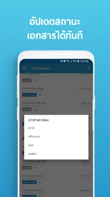 สร้างความประทับใจให้ลูกค้าและจัดการเอกสารสำคัญได้อย่างมืออาชีพ ด้วย FlowAccount Classic คุณสามารถจัดทำเอกสารธุรกิจหลากหลายประเภทได้อย่างรวดเร็วและถูกต้อง ไม่ว่าจะเป็น ใบเสนอราคาที่ดึงดูดใจ, ใบวางบิลที่ชัดเจน, ใบกำกับภาษี, ใบเสร็จรับเงิน, ไปจนถึงใบสั่งซื้อสินค้าและใบรับสินค้า ทุกเอกสารสำคัญจะถูกสร้างและจัดเก็บอย่างเป็นระบบ เพื่อให้การดำเนินงานของคุณราบรื่นไร้กังวล