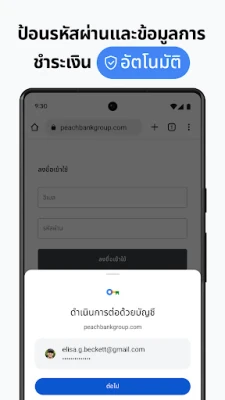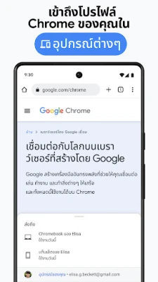 เปิดประสบการณ์การท่องเว็บที่ไม่สะดุดในทุกอุปกรณ์ของคุณ ด้วย Chrome ข้อมูลสำคัญไม่ว่าจะเป็นบุ๊กมาร์ก แท็บที่เปิดอยู่ หรือรหัสผ่าน จะซิงค์ถึงกันและเข้าถึงได้ง่ายเพียงคุณลงชื่อเข้าใช้ Chrome ไม่ว่าจะเป็นบนโทรศัพท์มือถือ คอมพิวเตอร์ หรือแท็บเล็ต คุณสมบัติกลุ่มแท็บช่วยให้การจัดระเบียบเว็บไซต์เป็นระเบียบยิ่งขึ้น เพิ่มประสิทธิภาพในการทำงานและการใช้งาน และไม่ต้องเสียเวลาพิมพ์ข้อมูลซ้ำๆ อีกต่อไป การป้อนข้อความอัตโนมัติจะช่วยเติมข้อมูลที่อยู่ รายละเอียดการชำระเงิน และรหัสผ่านที่บันทึกไว้ ทำให้คุณประหยัดเวลาและเข้าถึงสิ่งที่คุณต้องการได้รวดเร็วยิ่งขึ้นในทุกครั้งที่ใช้งาน มอบความต่อเนื่องในการทำงานและชีวิตประจำวันของคุณได้อย่างสมบูรณ์แบบ