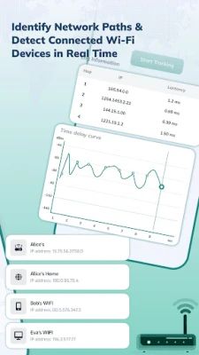 เจาะลึกทุกการเชื่อมต่อของคุณ ด้วยความสามารถในการวัดความแรงของสัญญาณ SIM (dBm) สำหรับโทรศัพท์มือถือของคุณได้ทั้งแบบซิมเดี่ยวและสองซิม พร้อมแสดงข้อมูล SIM โดยละเอียดและข้อมูลการโทรในบริเวณใกล้เคียง ติดตามความผันผวนของสัญญาณได้อย่างง่ายดายผ่านกราฟที่ชัดเจน สำหรับ Wi-Fi คุณสามารถตรวจจับและวิเคราะห์ความแรงของสัญญาณ Wi-Fi รอบตัว ระบุรายละเอียดเครือข่ายที่เชื่อมต่อ ทดสอบ Ping เพื่อประเมินความเสถียร และแม้กระทั่งดูอุปกรณ์ที่เชื่อมต่ออยู่ นอกจากนี้ยังสามารถตรวจสอบความแรงของสัญญาณ Bluetooth ของอุปกรณ์ใกล้เคียงได้แบบเรียลไทม์ พร้อมข้อมูลการเชื่อมต่อเพิ่มเติม เพื่อให้คุณมั่นใจในการทำงานร่วมกันของอุปกรณ์ต่างๆ.