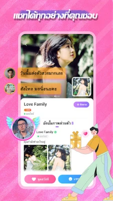 ไม่ว่าคุณจะมองหาใครสักคนเพื่อพูดคุยในยามค่ำคืน หรือต้องการแบ่งปันเรื่องราวส่วนตัว SUGO Lite มอบทางเลือกที่ครบครัน ด้วยห้องแชทเสียงที่เปิดให้บริการตลอด 24 ชั่วโมง คุณสามารถเลือกรูปแบบการสื่อสารที่ตรงใจ ไม่ว่าจะเป็นการพิมพ์ข้อความ การพูดคุยด้วยเสียง หรือการเห็นหน้ากันผ่านวิดีโอคอล เพื่อสร้างความคุ้นเคยในพื้นที่ที่ปลอดภัยและเป็นกันเอง แบ่งปันภาพถ่ายช่วงเวลาสุดประทับใจ หรือแสดงความรู้สึกดีๆ ด้วยการส่งของขวัญและเหรียญรางวัลพิเศษ ที่จะช่วยเพิ่มสีสันและกระชับความสัมพันธ์ให้แน่นแฟ้นยิ่งขึ้น