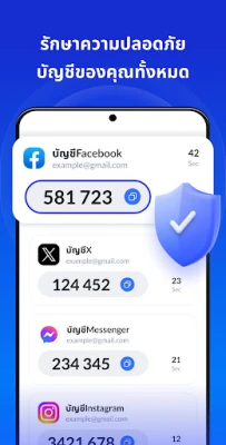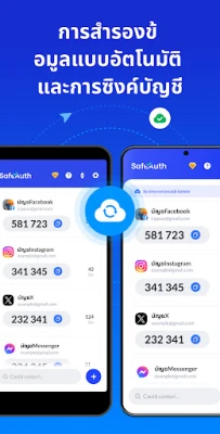 หมดกังวลเรื่องการเปลี่ยนอุปกรณ์ SafeAuth ให้คุณสำรองข้อมูลบัญชีทั้งหมดไปยังคลาวด์ได้อย่างปลอดภัยผ่านบัญชี Google ของคุณ เมื่อเปลี่ยนโทรศัพท์ คุณเพียงเข้าสู่ระบบและซิงค์ข้อมูลทั้งหมดกลับมาได้ทันที โดยไม่ต้องกังวลว่าข้อมูลจะสูญหายหรือต้องตั้งค่าใหม่ทั้งหมด SafeAuth รองรับการยืนยันตัวตนสำหรับบริการออนไลน์ชั้นนำมากมาย ไม่ว่าจะเป็น Google, Instagram, Facebook, Twitter, Dropbox รวมถึงแพลตฟอร์มอื่นๆ อีกนับพัน และยังสามารถปกป้องกระเป๋าเงินดิจิทัลของคุณได้อีกด้วย เพื่อความปลอดภัยสูงสุด SafeAuth ยังมาพร้อมฟีเจอร์ล็อกแอปด้วยการจดจำใบหน้า, ลายนิ้วมือ หรือรหัส PIN เพิ่มความอุ่นใจอีกชั้น แม้ใครจะเข้าถึงโทรศัพท์ของคุณ ก็ไม่สามารถเปิดแอป SafeAuth หรือเห็นรหัสยืนยันตัวตนของคุณได้หากไม่ได้รับอนุญาตจากคุณ